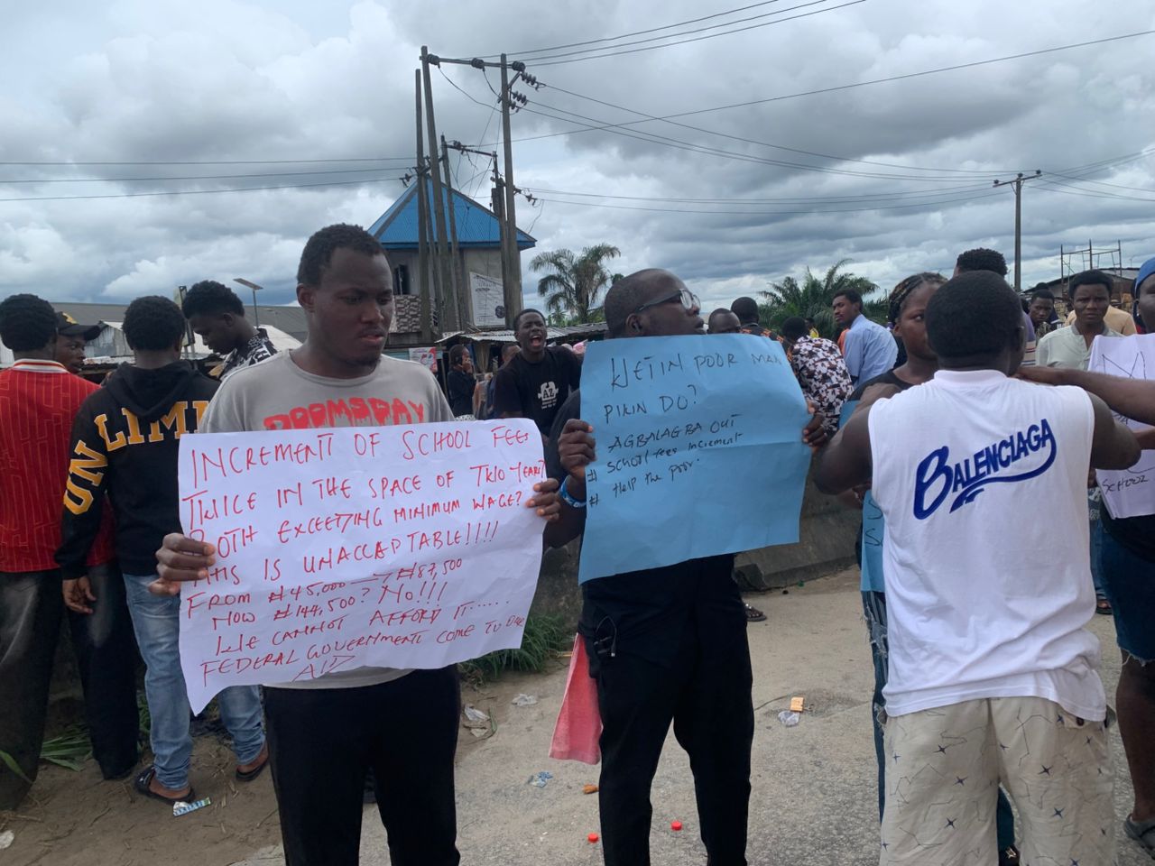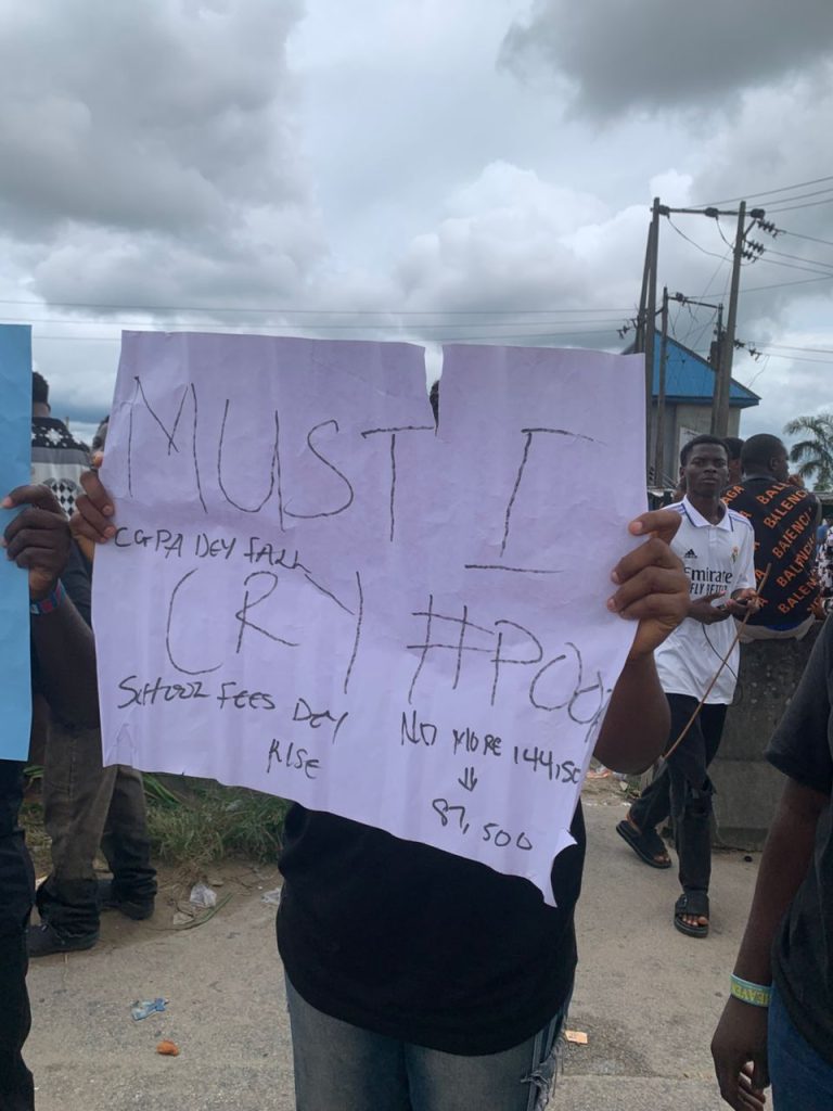 The visibly agitated students carried placards with inscriptions like “Agbalagba Out” and “Say No to Increment,” demanding the immediate reversal of the fee hike.