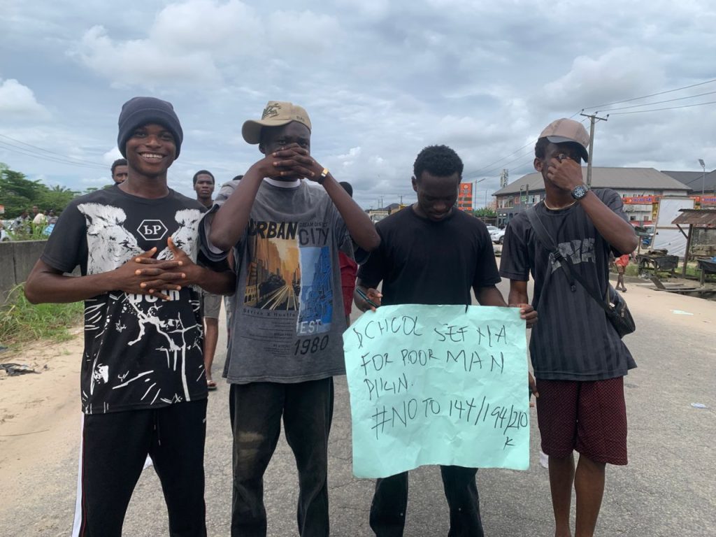 Footage obtained from our reporter on the ground showed hundreds of students barricading the East-West Road with tyres, wood, and vehicles, chanting protest slogans such as “We no go pay” and “We no go gree.”