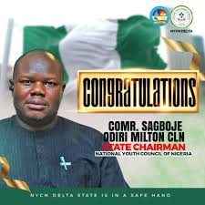 Comrade Milton Odiri Sagboje has emerged as the Delta State Chairman of the National Youth Council of Nigeria, Delta State Chapter.