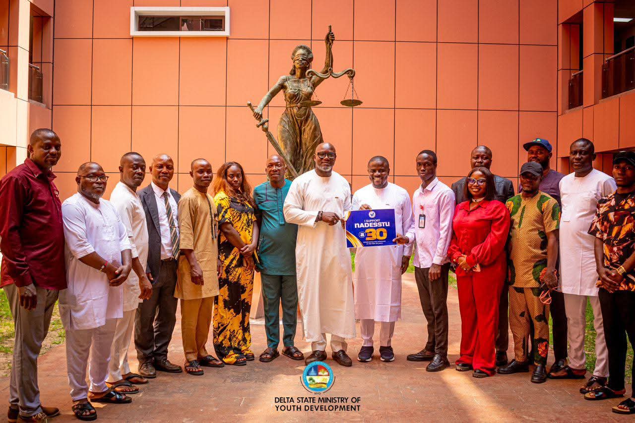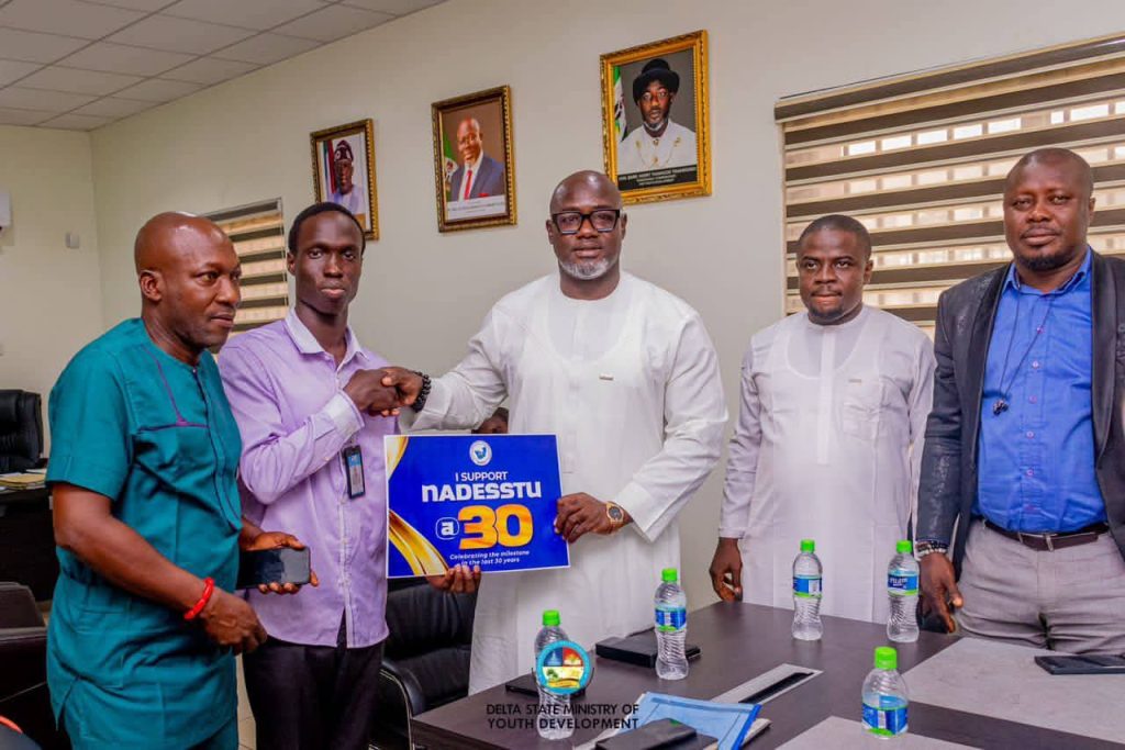 The Honourable Commissioner for Youth Development, Barr. Harry ThankGod Trakiriowei, has hosted the National President of the National Association of Delta State Students (NADESSTU), Comr. Oweiotu-ebi Oyinkare-ebi Joseph, and members of the association’s 30th Anniversary Planning Committee at the Ministry’s headquarters in Asaba.