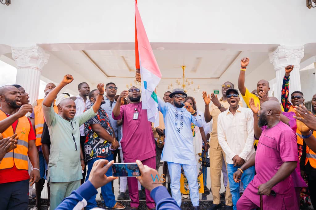 In a symbolic gesture of solidarity and unity, Awani lowered the INYC flag and hoisted that of the UIY, affirming the group’s legitimacy and allegiance to His Majesty, Ogiame Atuwatse III, CFR, the Olu of Warri.