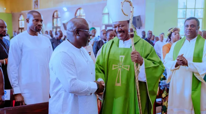 In his homily, the Catholic Bishop of Issele-Uku Diocese, Most Rev. Michael Elue, encouraged Nigerians to hold firmly to the “good fight of faith,” highlighting the importance of virtues such as righteousness, godliness, love, perseverance, and humility. He also called on the wealthy to remember and care for the less fortunate, reminding everyone that “what we give and share with others is what will truly matter when we stand before God on the day of judgment.”
