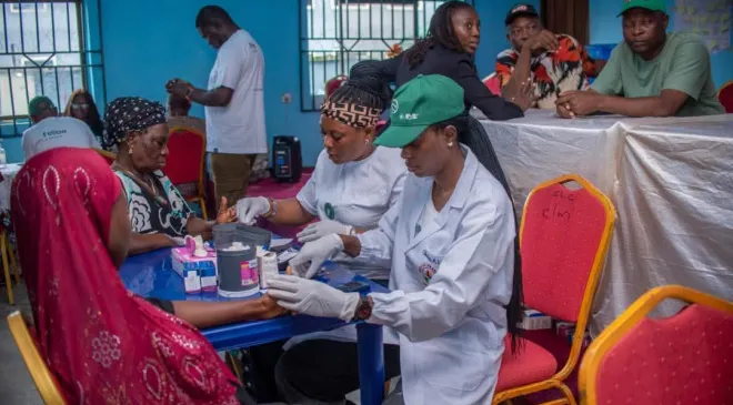 By 8 a.m., the hall was already filled with elderly men, women, and young people waiting to check their blood sugar levels and learn more about preventing diabetes. The event, themed “Come Check Your Sugar Level O!”, was organised by Senator Ede Dafinone’s office in partnership with the National Health Fellows, with a focus on prevention, lifestyle changes, and early detection of the disease.
